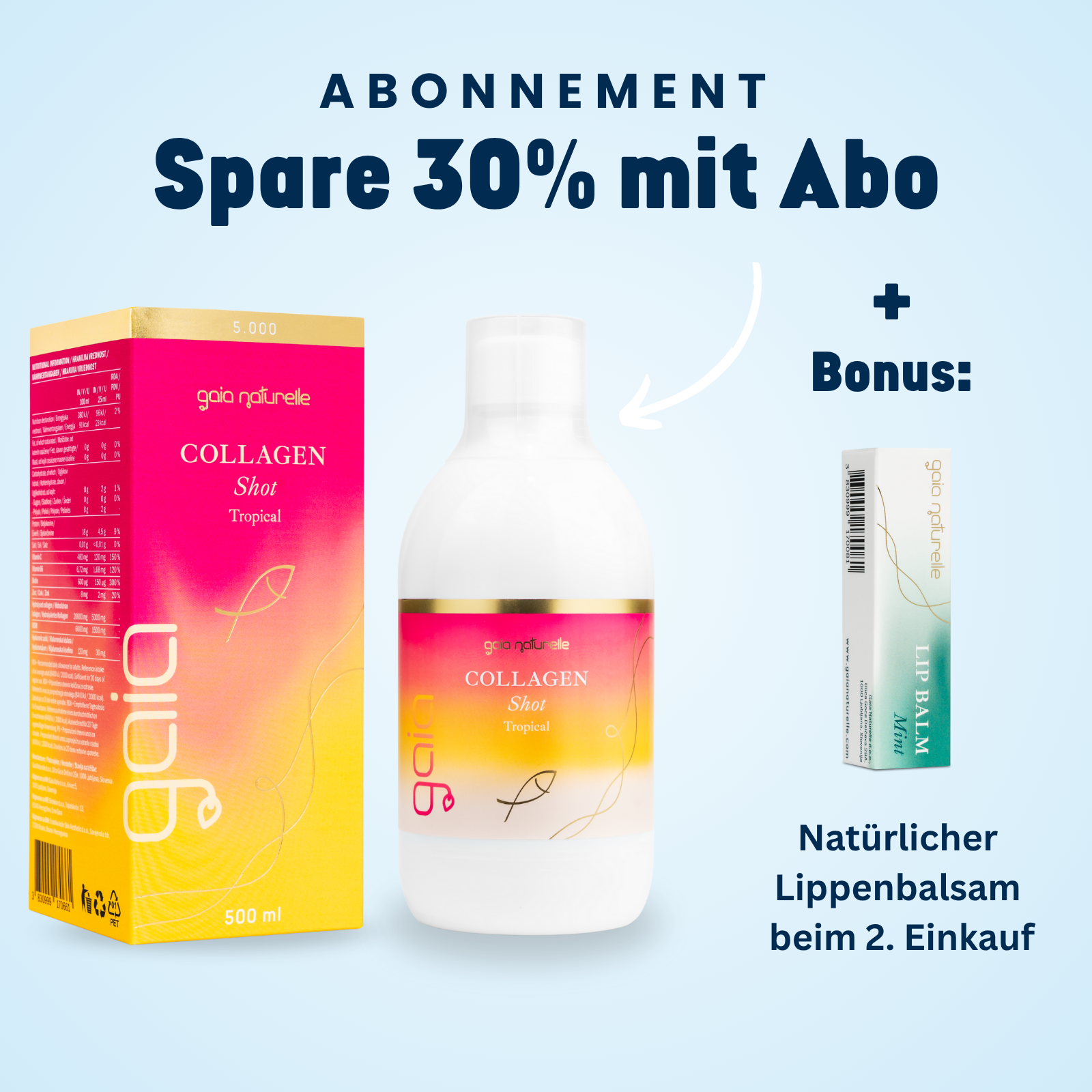 Die empfohlene Tagesdosis darf nicht überschritten werden. Falls du allergisch auf einen der Inhaltsstoffe reagierst, solltest du den Kollagen Shot nicht verwenden. Nahrungsergänzungsmittel sind kein Ersatz für eine ausgewogene und gesunde Ernährung oder Lebensweise.